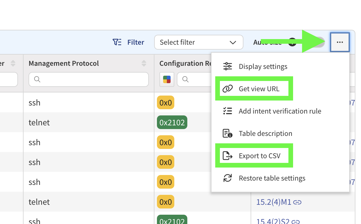 Use various sharing options to send the URL, csv file, or API payload to the relevant recipient or adjacent tooling.