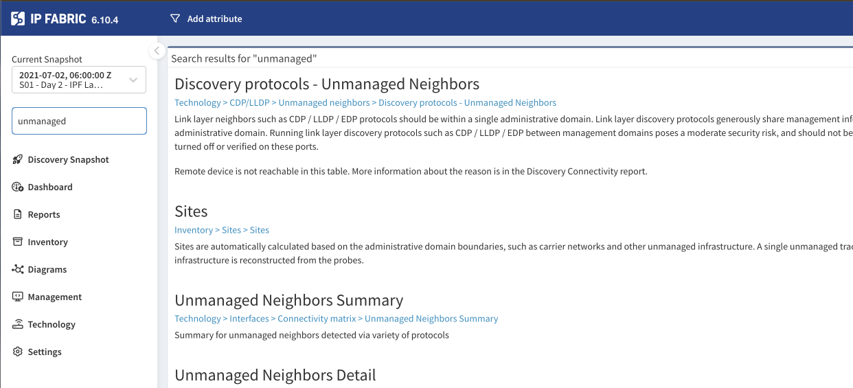 This is crucial information for network and security teams; from first Discovery, IP Fabric reveals what you potentially don’t know about your network.