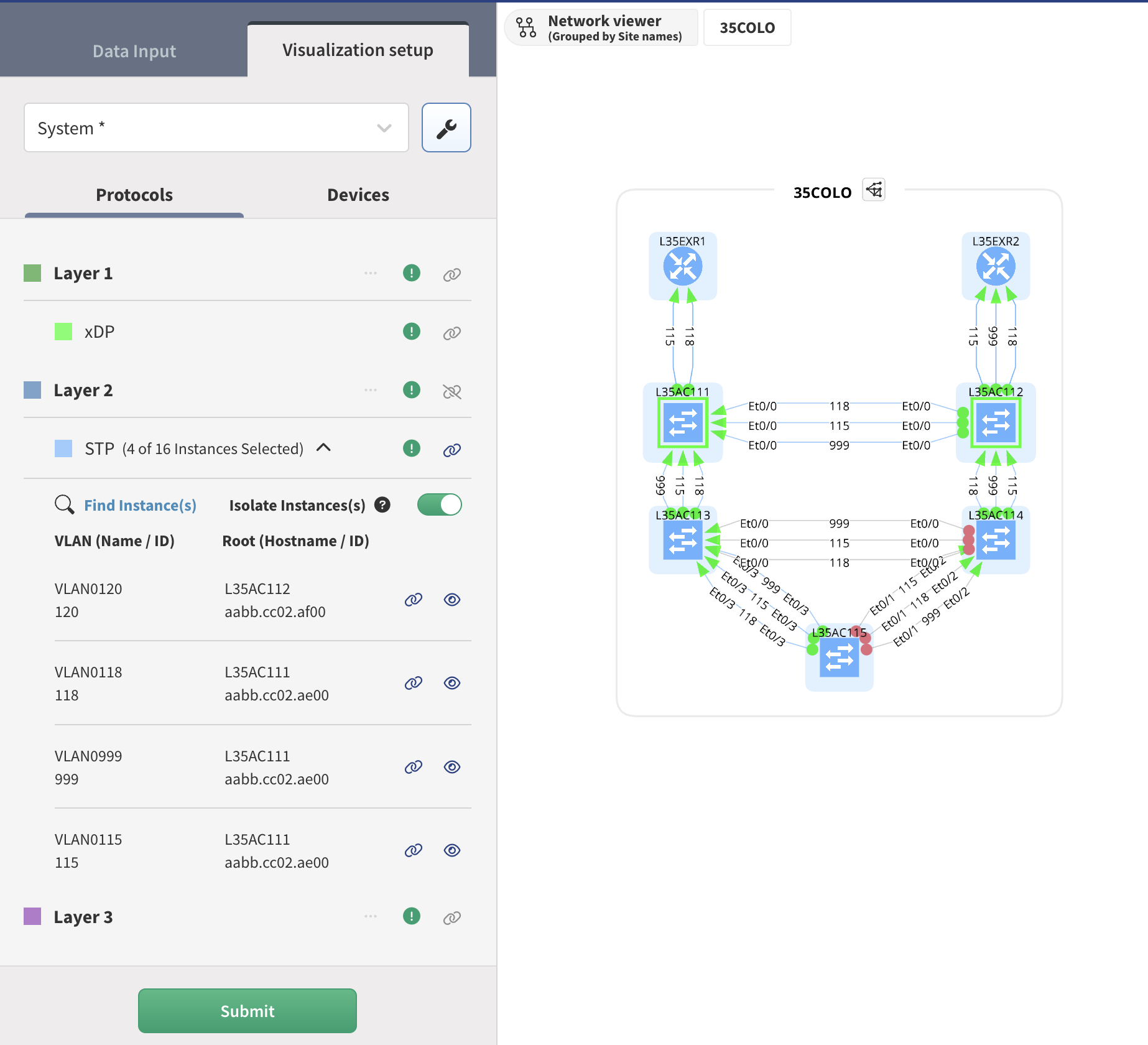 You may need multiple static diagrams to show the same part of the network for different layers, where IP Fabric offers all of your network in a single view.