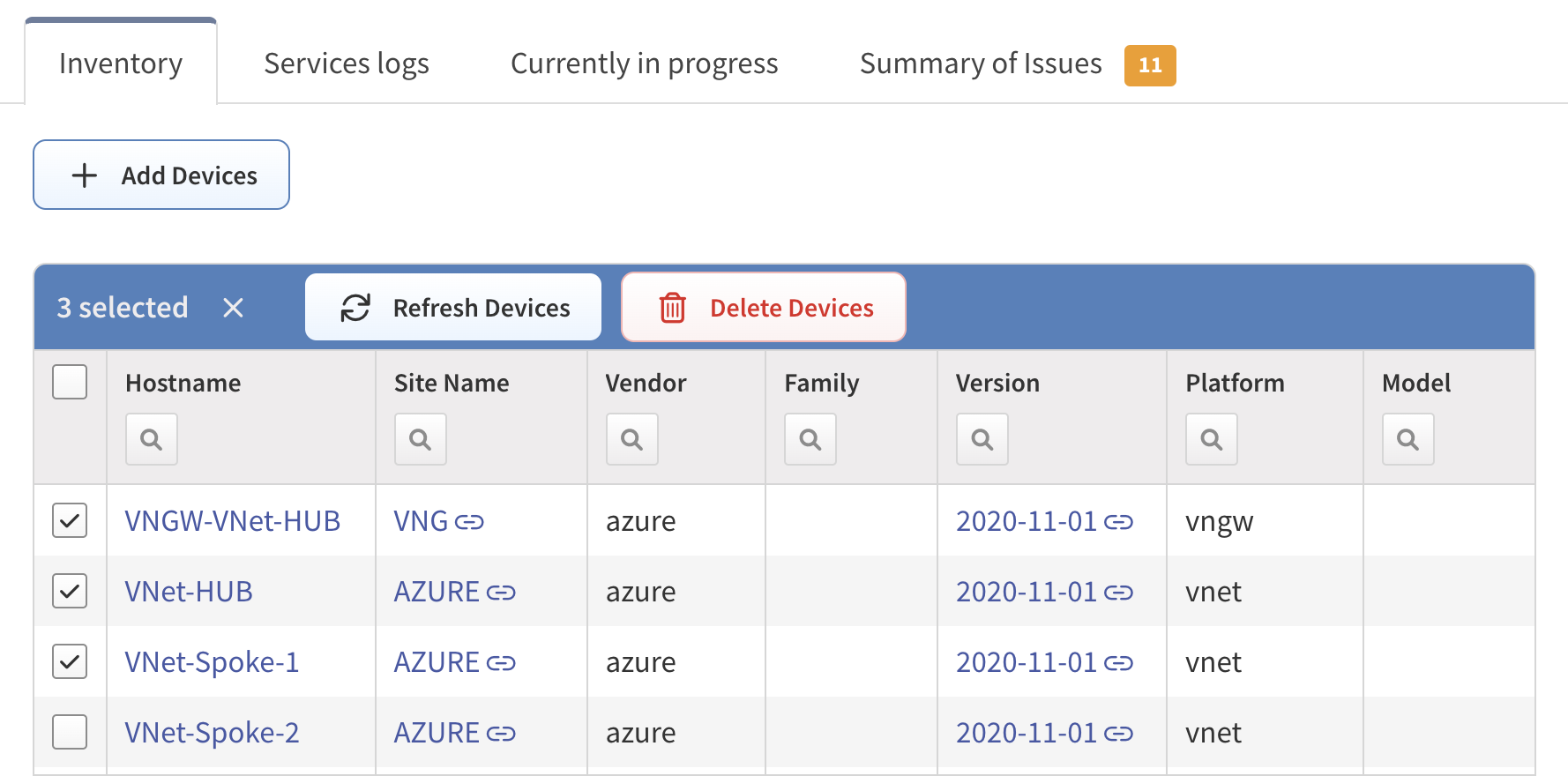 You’ll notice the Connectivity Report that details whether devices were successfully connected, and if not, it shows errors such as connectivity timeouts or authentication failures to help troubleshoot issues during discovery. The platform includes the CLI output for all errors, and you can easily filter your view on the Connectivity Report to see what’s important to you.