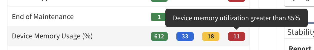 In the below example, you can quickly identify devices with high memory utilization: