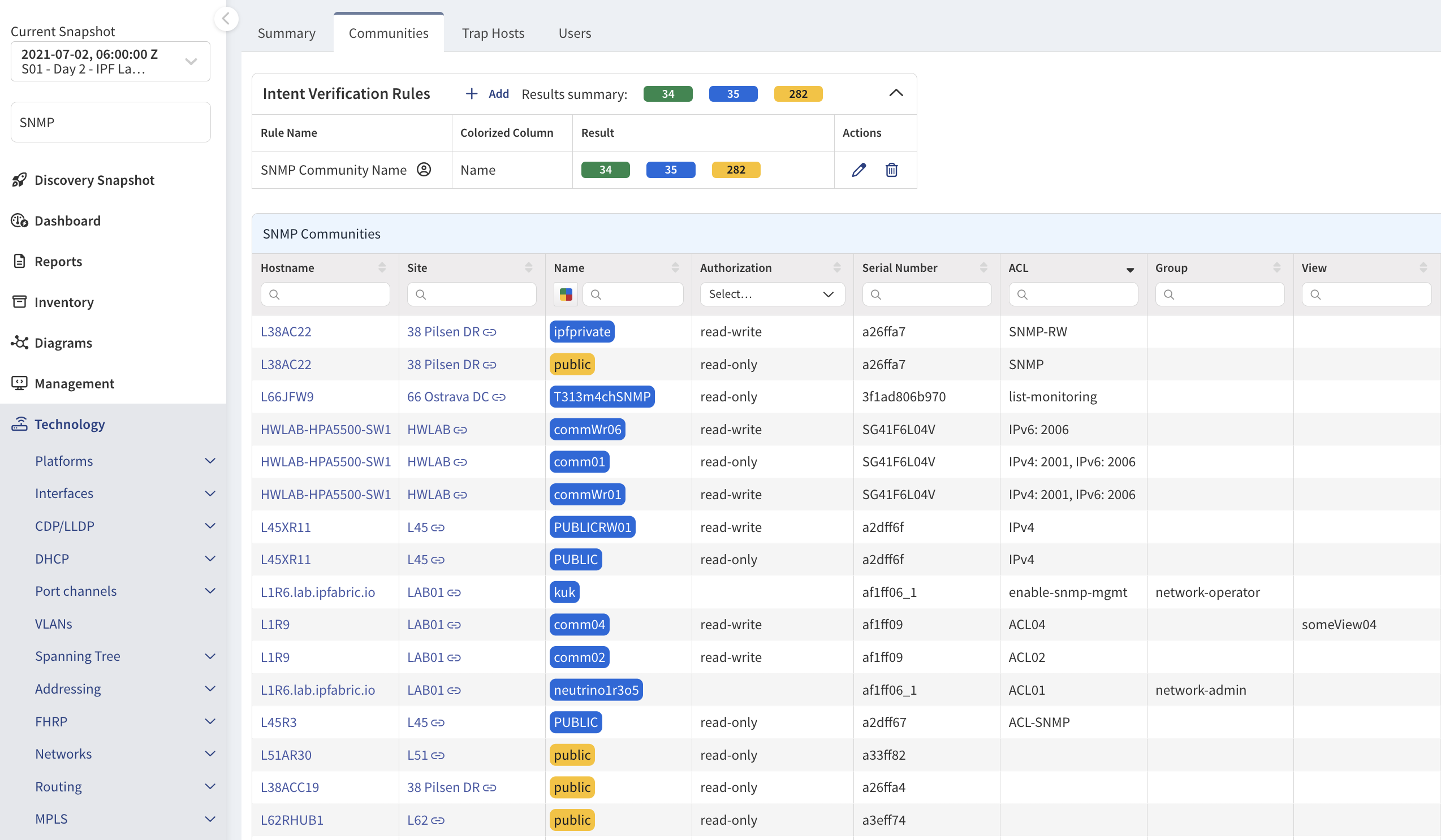 Example: SNMP communities with ACL applied.