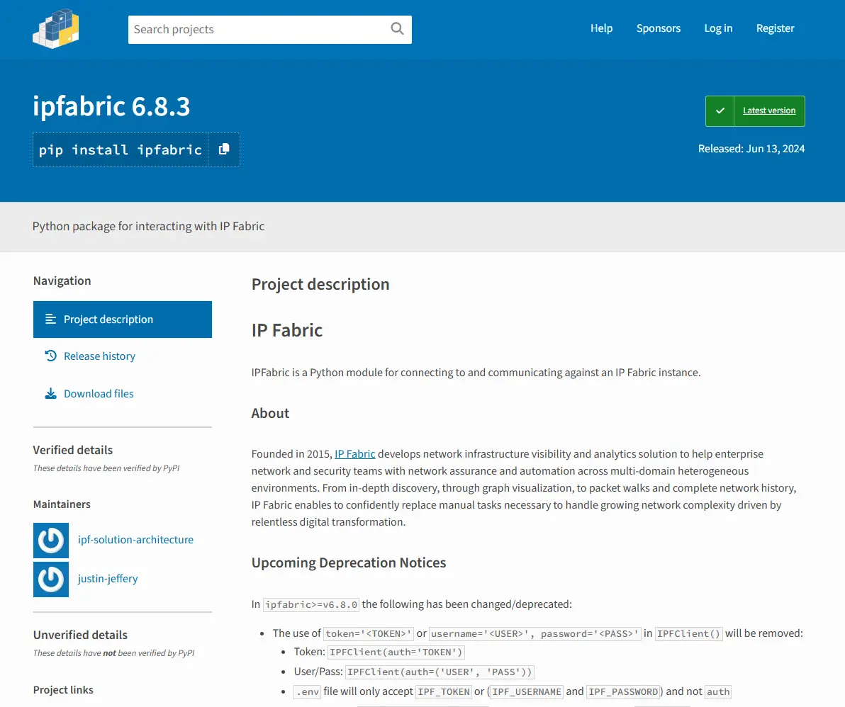 IP Fabric has a Python API for connecting to and communicating against an IP Fabric instance using IP Fabric’s Rest API. The IP Fabric Python Software Development Kit (SDK) allows you to quickly gather data from your network in as little as 3 lines of code. The SDK comes with command line utilities that allow you to unleash the full potential of network data.